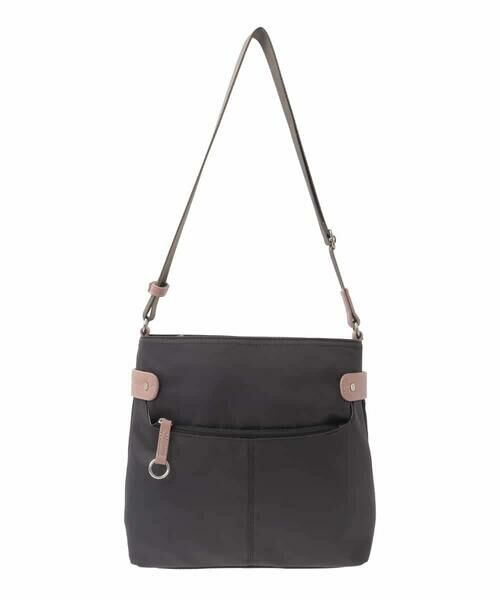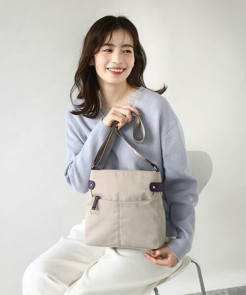 ナイロン混のカジュアルな雰囲気が魅力的な、イージーケアショルダーバッグ。撥水加工を施した雨の日にも安心な普段使いに最適なひと品です。