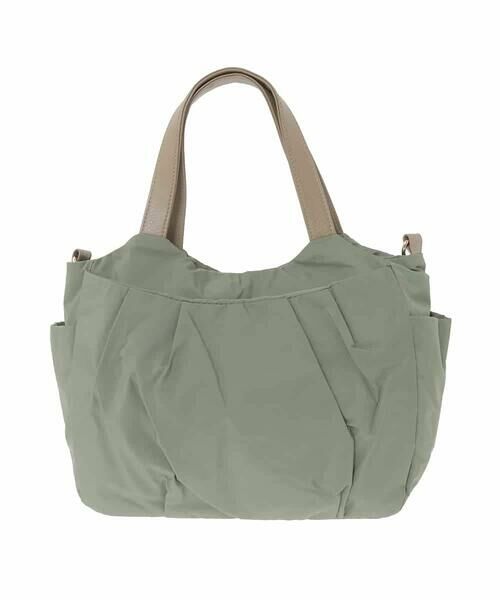 軽量素材でカジュアルな印象ながら、合成皮革の持ち手が品良くまとめてくれる大人カジュアルにぴったりのアイテムです。