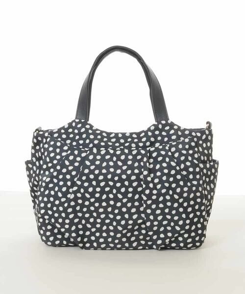 コーディネートのアクセントとしても活躍してくれる、お洒落なデザインバッグです。ニュアンスある総柄プリントが優しい雰囲気をプラスしてくれます。