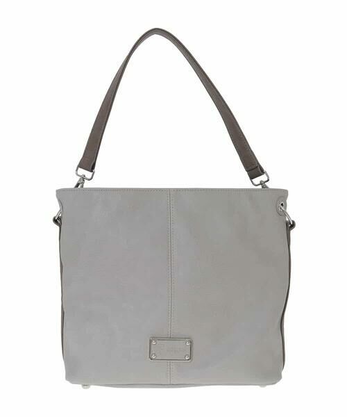 ステッチを効かせた合成皮革仕立てのカジュアルライクなショルダーバッグ。