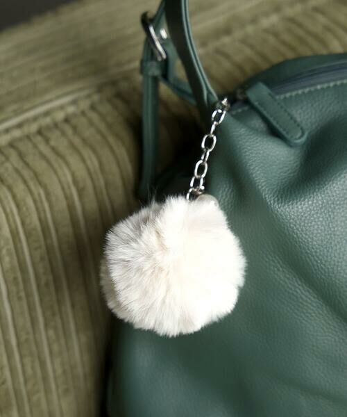 バックに華やかな印象をプラスするファーチャームです。 思わず触りたくなるような、毛足の長いふんわりとしたフェイクファーに、艶めくパール調モチーフとロゴ入りメタルプレートを加えて、大人っぽく仕上げました。 大きすぎないちょうどいいサイズ感で、他のバッグチャームと合わせたアレンジも可能。お手持ちのバッグにはもちろん、ポーチやキーチャームにつけてもかわいらしく仕上がります。 大切な方へのギフトに、バッグとあわせてプレゼントするのもおすすめです。