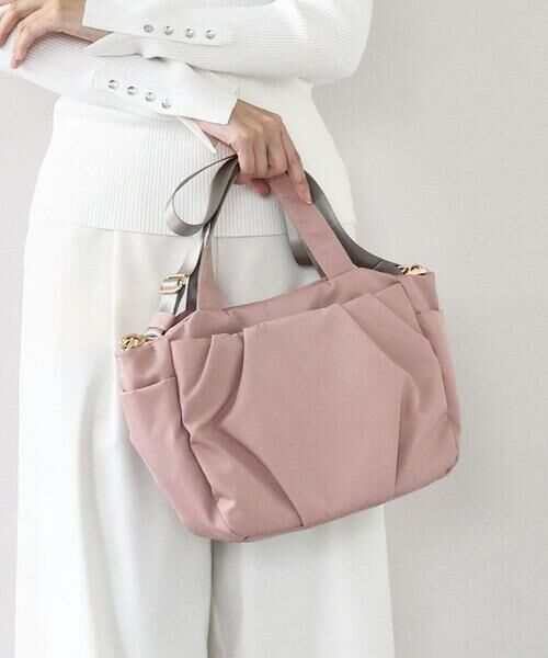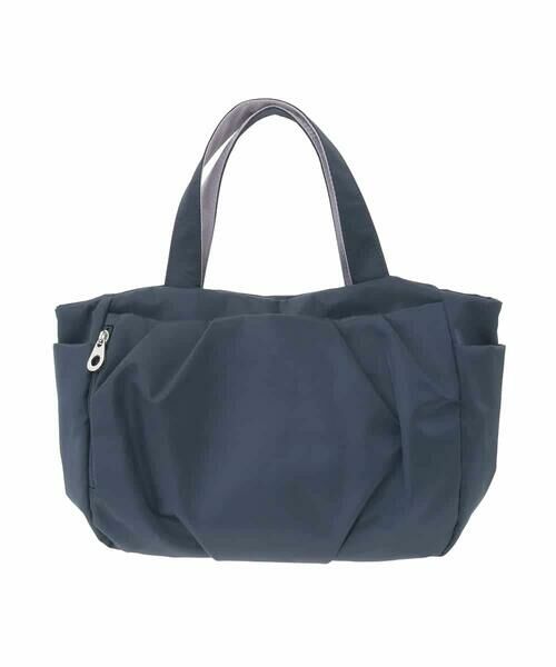 撥水加工を施した扱いやすさが魅力のトートバッグです。 タックギャザーでふっくらと優しい雰囲気を加えた、女性らしいフォルムがポイント。コンパクトながらも、サイドやインナー仕分けなどの充実ポケットで、使い勝手のいい仕様が嬉しいです。