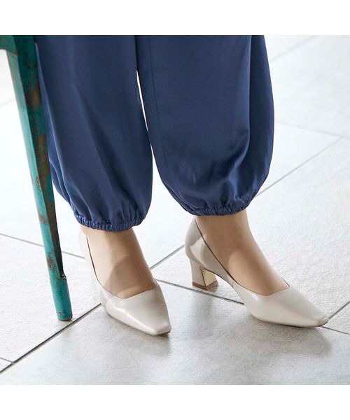 シンプルなデザインながら、モード感のあるセミスクエアトゥが印象的なパンプス。