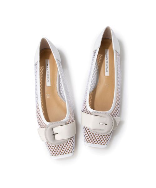 #靴 #レディースシューズ #パンプス #メッシュ #スクエアトゥ #バックル #フラット #ローヒール #オケージョン