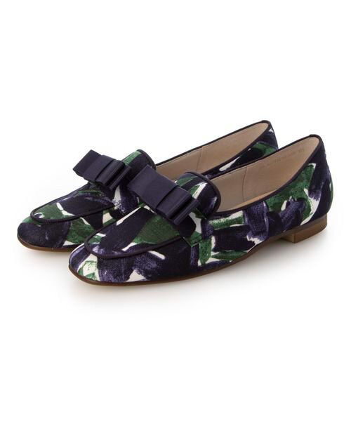 ローファーにあしらったリボンと生地使いが大人可愛い1足。