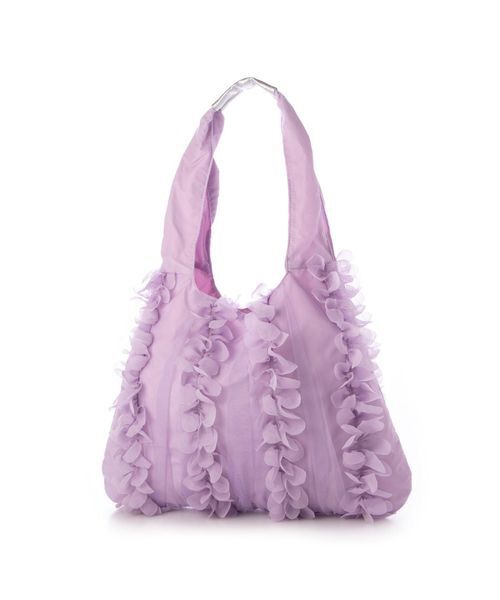 フリルデザインが印象的なトートバッグ。柔らかな素材感で女性らしさを演出し、シンプルな服装に華やかさをプラスします。モノトーンコーデのアクセントにぴったりです。・A4対応(22×31cm):×・長財布(10×20cm):〇・ペットボトル横向き(500ml):〇・ペットボトル縦向き(500ml):〇・持ち手の高さ/22.0cm・重さ/130.0g