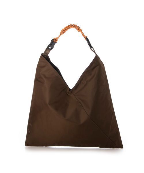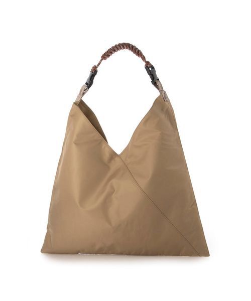 三角フォルムのショルダーバッグ。軽量かつ大容量で、デイリーユースに最適な実用性が魅力です。カジュアルなパンツスタイルに合わせて、抜け感のある大人コーデを楽しめます。・A4対応(22×31cm):〇・長財布(10×20cm):〇・ペットボトル横向き(500ml):〇・ペットボトル縦向き(500ml):〇・持ち手の高さ/22.0cm・重さ/250.0g
