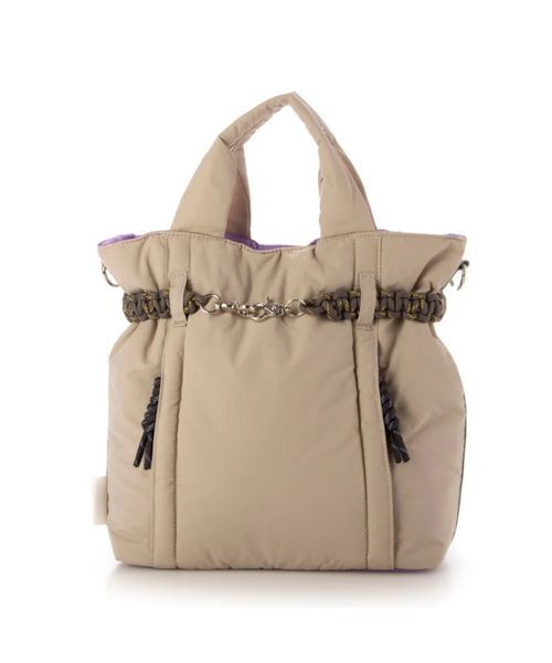 カラーごとに異なる個性が光る、ふんわりフォルムのトートバッグ。内側のカラー配色や、コード&チェーンのアクセントにも注目!