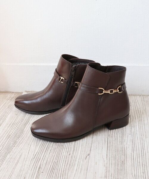 【Autumn&Winter Collection】人気のチェーンベルトデザインがスクエアトウになってアップデート。ベルトは取り外しも可能な2wayタイプだからシンプルなショートブーツとしても使える「モードカオリ」注目アイテムです。水をはじく撥水レザーを採用,革の繊維層が水を吸い上げにくい作りになっていて天候に左右されず、いつものオシャレを楽しめます。(完全防水ではありません。)雨や雪道でも安心なブルーグリップソール.ソールの青い部分が他より突起しているので滑りにくく、柔かな素材になっています。中敷には厚めの低反発クッションを使用しているから歩行時の衝撃を吸収します。どんなコーディネートとも相性の良いカラー展開.これからの季節にぴったりなダークトーンのカラーを揃えました。きれいめなスカートやメンズライクなワイドパンツがおすすめ。裾からちらっとのぞくフレアなカットのヒールがオシャレ度をぐっと引き上げてくれます。履くだけでトレンドルックを叶えてくれるショートブーツです。