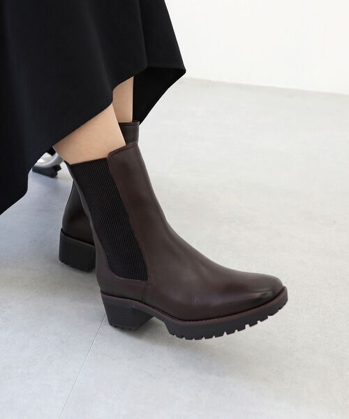 【Autumn&Winter Collection】昨年大人気のチェルシーブーツはバリエーションを増やして登場!今年はトレンドのスクエアトゥにアレンジし、リブ素材のサイドゴアにすることでシック&モードな大人顔にアレンジ。厚底でボリュームあるソールと、足首をキュッとしぼった美脚見えの絶妙バランスで、品よく大人っぽい印象をプラスしてくれます。トレンドのミドルブーツはふくらはぎに少しかかるくらいの筒丈で、スカートにもパンツにも相性が良く、ラクチンな履き心地。デイリーユースに活躍するアイテムです。水をはじく撥水レザーを採用,革の繊維層が水を吸い上げにくい作りになっていて天候に左右されず、いつものオシャレを楽しめます。(完全防水ではありません。) 雨や雪道でも安心なブルーグリップソール,ソールの青い部分が他より突起しているので滑りにくく、柔らかな素材になっています。中敷には厚めの低反発クッションを使用しているから歩行時の衝撃を吸収します。寒い時期の強い味方!あったか断熱機能,撥水レザーと裏地の間に高機能中綿をしっかり全面に貼り、冷たい外気をシャットダウン。ブーツに包まれた足全体の体温を保持することで、冬のつらい底冷えから解放してくれます。降雪地域でも大好評の〈ブルーグリップソール〉〈撥水レザー〉の仕様に〈断熱中綿〉がプラスされた新シリーズの【オールシーンプラス】モデル。天候の読めない秋冬のご旅行にもぴったり。中敷は厚めの低反発クッションでふかふかな足当たりです。機能性とオシャレを兼ね備え、一足持っていると重宝する「モードカオリ」のチェルシーブーツです。※完全防水ではございませんのでご注意ください。