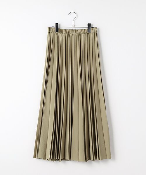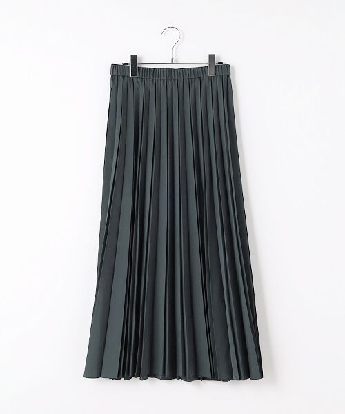【素材】高密度なタフタに国内工場で微起毛とヴィンテージ加工を施し、ハリ感を残しながら、ソフトな風合いに仕上げました。UVカット効果と速乾性、接触冷感に優れ、オールシーズンご使用いただける素材感です。【デザイン】腰回りはスッキリと、裾に向かってボリュームを出した変形プリーツスカート。ヒダの山が親子のようにランダムに入っているので、ニュアンスある動きを作ってくれます。合わせるアイテムを変えてオンオフ両シーンで重宝する一着です。