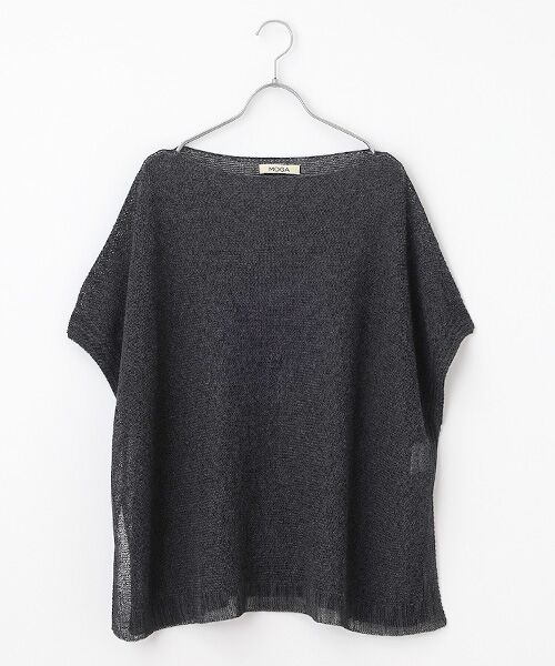 【素材】細く繊細な和紙の糸と擬麻加工の極細のリング糸を一緒に編んだ、清涼感とエアリー感のある素材。【デザイン】直線的なデザインで肌離れがよく深めのスリットはボトムにそのまま手が入れられるバランスになっています。