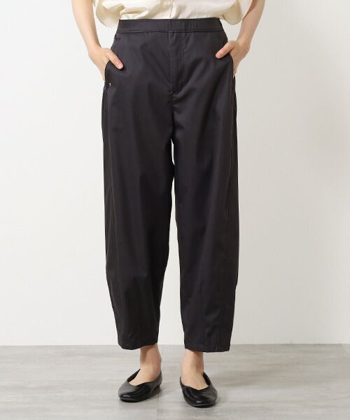 サイドから裾に向けてカーブの膨らみを持たせて裾で少し絞ることによって特徴のあるシルエットが生まれます。