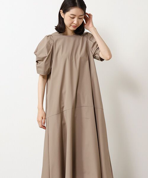 Aラインにたっぷりとした分量感を出したフレアーシルエットのワンピース。