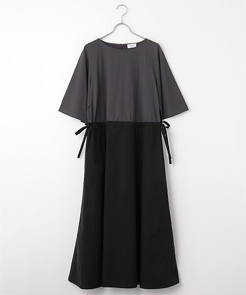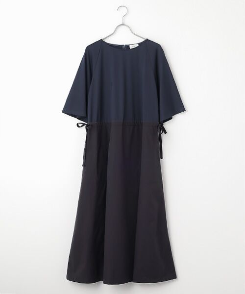 ジャージ素材とタフタをドッキングしたフレアーワンピース。