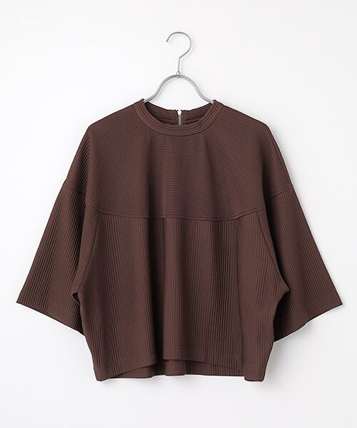 【素材】組織で表現したキルティングのような凹凸のある表情のカットソー素材。程よいハリ感と肉感。少し光沢があり、カットソー素材でもカジュアルになりすぎず、取り入れやすいです。【デザイン】胸のあたりに切り替えを入れてつくった、コクーンシルエットのプルオーバー。ゆったりしたサイズ感。中肉の肉感ですがゆったりとした袖口なので暑苦しくなく着られます。さりげないデザイン性があり、一枚でも着映えします。同素材のスカートとセットアップもおすすめです。