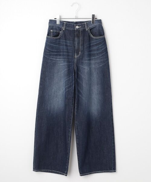 【素材】シーズン問わず使いやすい少し薄手の10オンスのデニム素材。綿100%ですが柔らかく、くたっとした着やすい素材です。【デザイン】ジャストウエストで履けるワイドパンツ。トレンドのコンパクトなトップスに合わせやすい太めシルエット。短丈のプルオーバーや、ブラウスをインして着こなすのにバランスのいいデザインです。やりすぎない加工感に仕上げているので大人でも履きやすいデニムです。