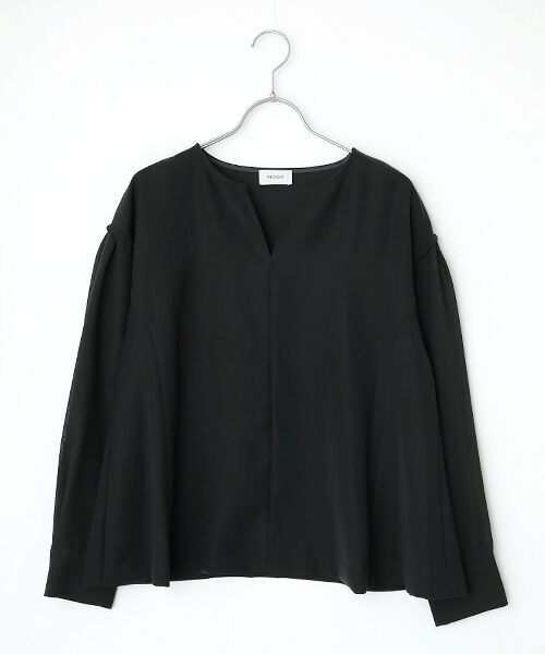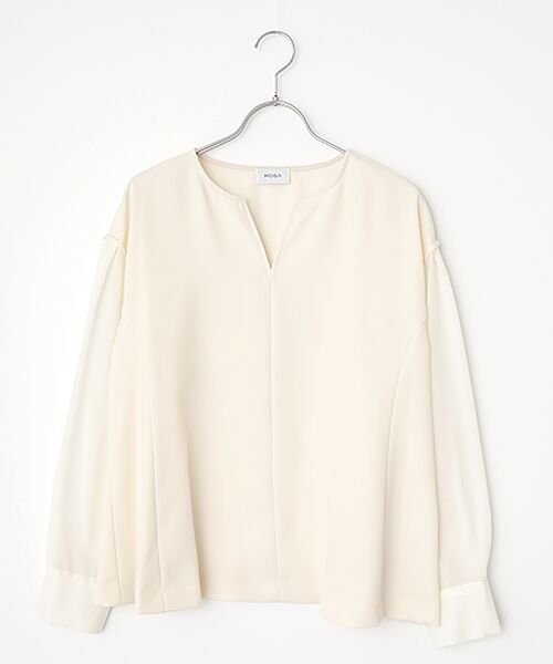 抜け感のあるTネックに見頃は裾に向けて広がりを持たせた女性らしいラインのブラウス。