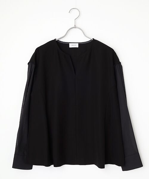 透け感のある別素材の袖はふんわりとボリュームを出しエレガントな上品さをプラス。