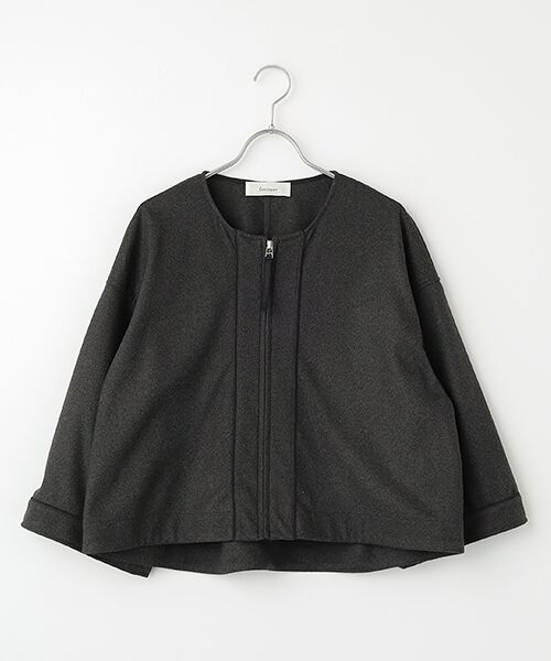 【素材】ウールのフラノのようなニット素材。合繊なのでもちろんウォッシャブルでピリングもしにくく、伸縮性もあるので着やすい素材です。【デザイン】パイピング仕様、コクーンシルエットで一枚で着映えするデザイン。前あきなので羽織風にも。ファスナーを途中まで開けてスキッパー風に着こなすのもおすすめです。ゆったりとしていて袖口も広めなので気温の高い時期からも取り入れやすいプルオーバー。先々はハイネックなどをインしての着こなしがおすすめです。