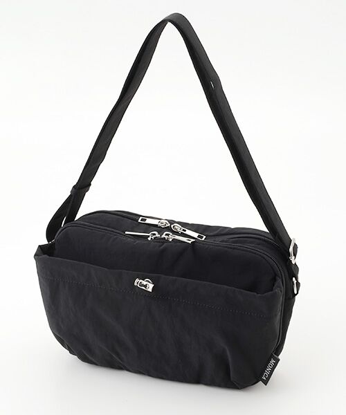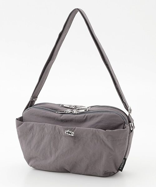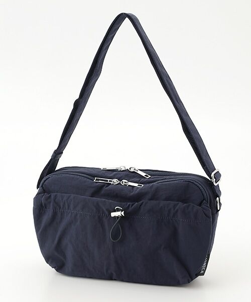 フロントのドロストデザインがポイントのショルダーバッグ。カジュアルな雰囲気ですが、ポケットが多く機能面も◎前側のファスナーポケットの中には取り外し可能なストラップがついており、鍵やパスケースをつけることができます。長財布や500mlペットボトル、ミニポーチ、ハンカチなどお出かけに必要な荷物をしっかり収納できるサイズ感です。※外側…マグネットポケット×1、ファスナーポケット×1,オープンポケット×2 内側…オープンポケット×3、ファスナーポケット×1、キーフックあり