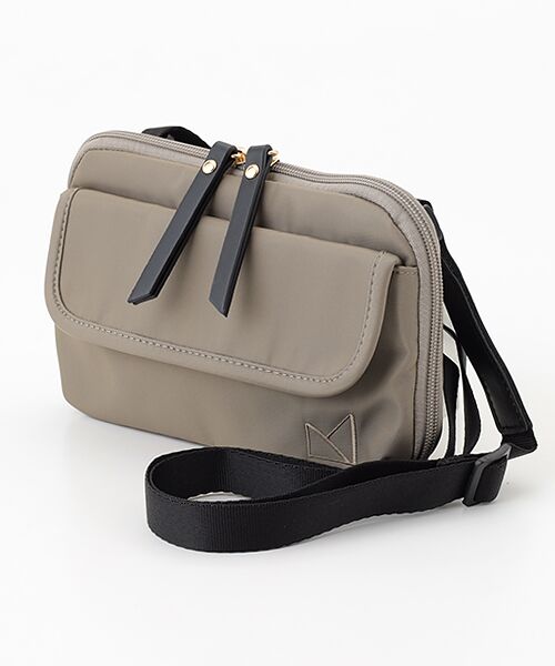 正面のかぶせポケットにはカバー付きのスマートフォンが入るので、お財布ポシェットとスマホポシェットが一体化したようなショルダーです。