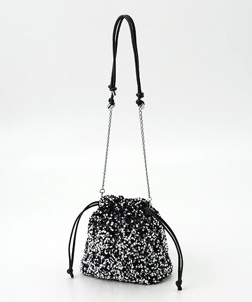 キラキラのスパンコールがポイントのショルダー。開け口の紐をひくと丸みのある巾着型に。取り外し可能なチェーンショルダーストラップがついているので、巾着バッグとしてでなく、ショルダーバッグとしてもお使いいただける2WAY仕様となっております。ちょっとしたお出かけやパーティーシーンでも活躍してくれます。※内側…オープンポケット×1,ファスナーポケット×1※撮影環境により、実際のカラーと異なる場合がございます。 また、ご覧いただく環境(携帯やスマートフォン、パソコンなどの画面)と実物では色が異なって見える場合がございます。ご了承の程お願いいたします。