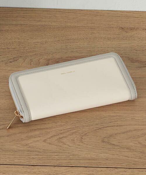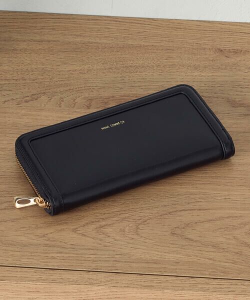 ・額縁切り替えのデザインがポイントのラウンドジップ長財布。