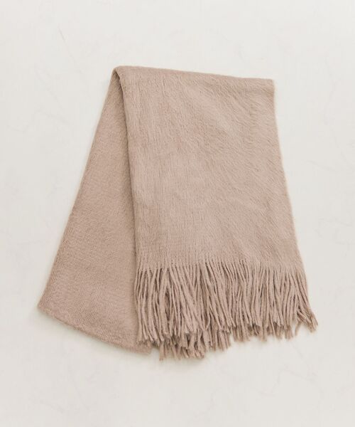 体温調節と秋らしさをスタイリングに取り込むのに活躍するストール。ふんわりとした起毛感のあるシャギー素材は、やわらかく肌触りの良い着用感を演出します。ベージュ、ブラウン系のトレンドカラーに合わせやすいソフトカラーで展開。生地端はフリンジを施しているので、顔周りに華やかな印象をプラスします。どんなスタイリングにも取り入れやすいシンプルなデザインが魅力的なアイテムです。