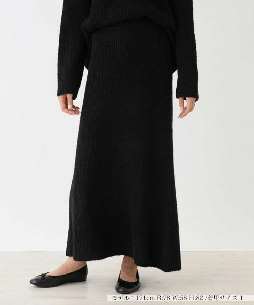 ウエストラインにブランドロゴをデザインしたニットスカート。自然に広がるフレアシルエットとロング丈のバランスが、すっきりスタイルアップ見せも叶えてくれそう。ウエストは総ゴム仕様で心地よくフィット。シンプルなデザインなので、お手持ちのトップスとも合わせやすくデイリーに活躍してくれます。同素材のニットを合わせたセットアップスタイルも洒落感たっぷりに決まります。