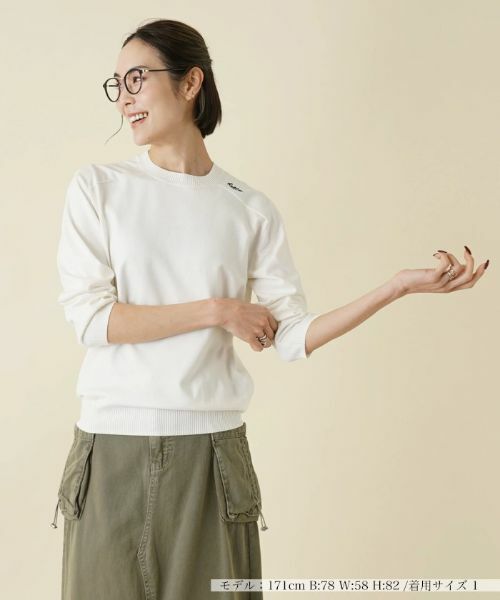 左肩部分にさりげなくあしらった『Hello』のロゴ刺繍が、さりげないアクセントになった長袖ニットプルオーバー。気になるデコルテを自然にカバーしてくれるネックラインは浅めに設定し、落ち着いた上品な佇まいに仕上げました。ラグラン切り替えでヘルシーに着こなせる一枚は、デニム合わせのカジュアルコーディネートはもちろん、レディなスカートをちょっぴりラフに楽しみたい時にもおすすめです。飽きのこないベーシックなアイテムなので、ワードローブに一枚あると重宝するアイテムです。