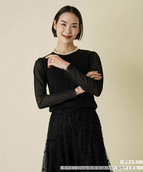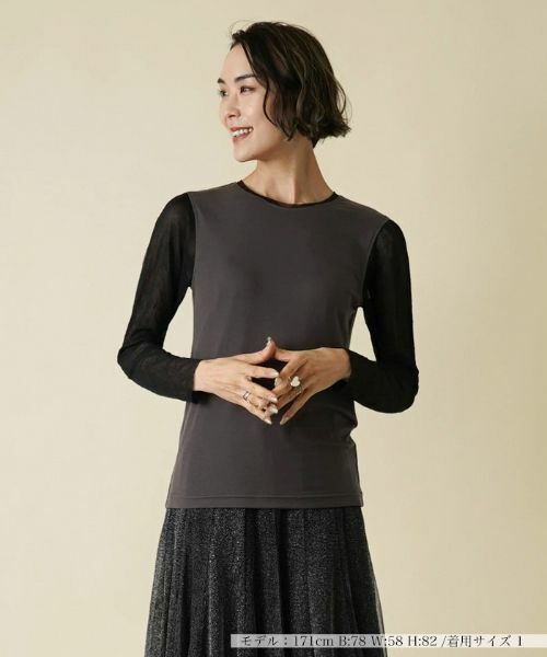 ネックラインやスリーブを透け感のあるシアー素材で切り替えたカットソー。ボディにはしなやかなストレッチ素材を使用しているから、着心地も抜群。シンプルに着こなすだけでさりげない軽やかさを演出できるアイテムです。1枚で着るだけでも表情のあるデザインですが、ジレやサロペットなどと合わせればお洒落なレイヤードスタイルが完成。お手持ちのアイテムとも合わせやすく薄手素材なので、ロングシーズン活躍してくれます。