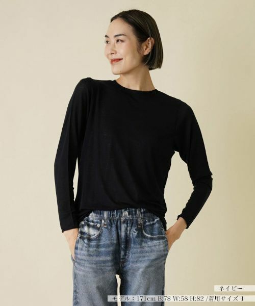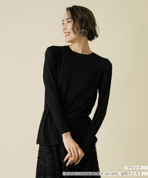 余計なデコレーションのないすっきりとしたシンプルなデザインが着回しに便利な、長袖プルオーバー。ネックラインは浅めに設定し、落ち着いた上品な佇まいに仕上げました。シルクやカシミヤをブレンドした上質素材で仕立てているから、肌あたりも良く着心地も快適。薄手の素材なので、レイヤードもしやすく、ロングシーズンお使いいただけます。お手持ちのアイテムとも合わせやすいので、デイリーユースに重宝するアイテムです。