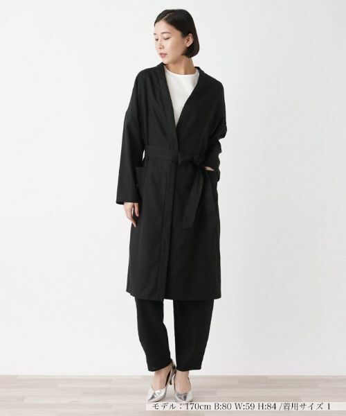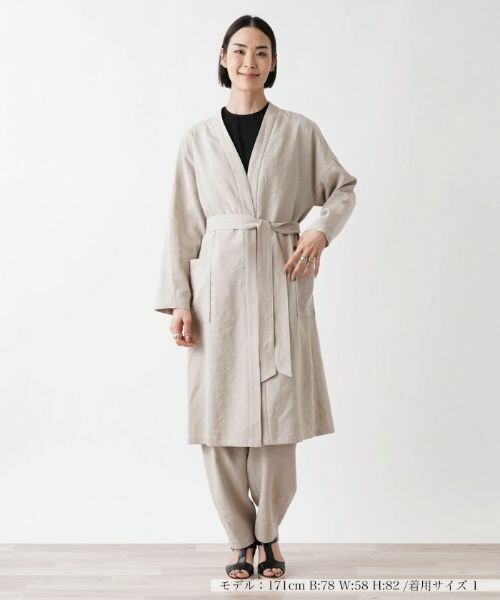 ガウンのように軽やかに羽織れるロング丈のノーカラージャケット。麻ベースの爽やかな風合いの生地を使用しており、季節感を感じさせる仕上がりに。付属のリボンベルトをウエストマークすることで、お好みに応じてシルエットのアレンジも可能。別売りのパンツを合わせて、セットアップとしてコーディネートするのもおすすめです。さっと着こなすだけで、エフォートレスな旬のスタイリングを楽しめるプラスワンアイテムです。
