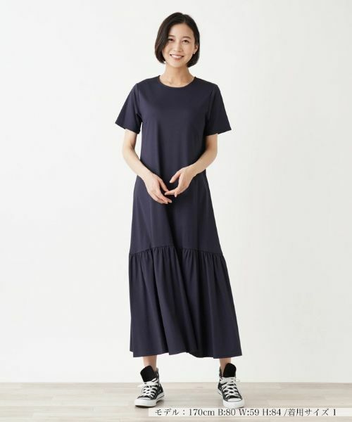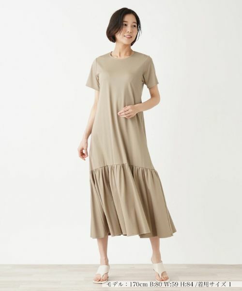 落ち感のあるスムースな生地を使用した半袖ティアードワンピース。浅めのクルーネックにに仕上げた上品さのあるルックスが魅力的な1枚です。ストレッチ性があるから着心地もよく、ボディラインを拾わないゆったりとしたシルエットがエフォートレスな魅力を放ちます。シンプルなデザインなので、デイリーにも使いやすく、ネックレスなどの小物をプラスすることで華やかさのある雰囲気に。
