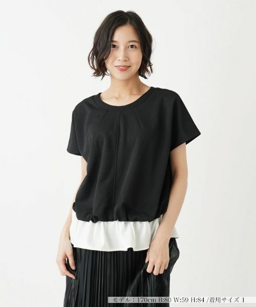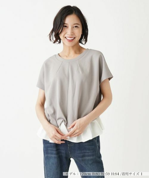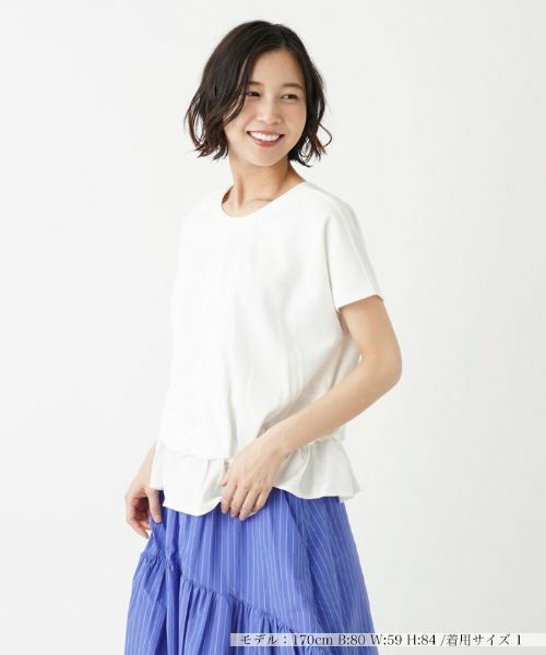 フリルがヘムラインを飾るフェミニンムードを放つカットソートップス。切り替え部分をふんわりとさせ、カジュアルな着心地はそのままに可愛らしさをアピール。ラウンドネックとVネックの前後で着用が可能なので、合わせるアイテムや気分によって変えられるのも嬉しい魅力。大人がデイリーユースできる落ち着いたカラー展開です。スカートはもちろん、パンツとも合わせやすいデザインで着回しの幅が広がりそう。