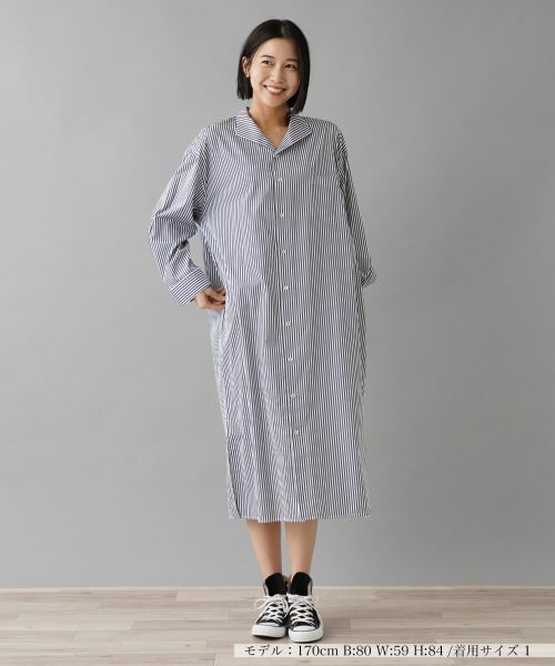 濃紺×ホワイトでハンサムなロングシャツブラウス。羽織として、パンツスタイルにもばっちり。袖をちょっとまくって、こなれ感のあるワンピーススタイルもおすすめです。