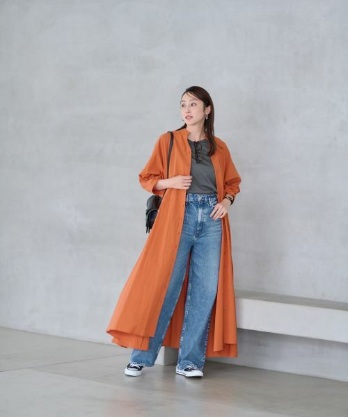 洗練されたカジュアルスタイルを演出してくれるロングシャツワンピース。柔らかく軽いコットン素材を使用しており、着心地も快適。スキッパーネックが抜け感を出し、顔周りをすっきりとした印象に見せてくれます。バックにはシャーリングゴムを施し、ボリューム感をプラス。フロントのボタンを開けて羽織りとしても、閉じてワンピースとしても使用可能なので、着こなしの幅が広がります。ボディラインを拾わないゆったりとしたシルエットでストレスフリーにお洒落が決まるアイテムです。