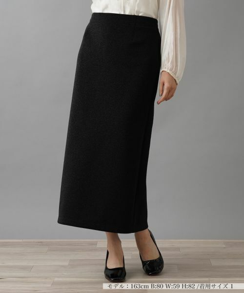 シンプルでありながら煌めくラメがエレガントな印象のロングスカート。タイトなシルエットがすっきりと上品なスタイルを実現します。ウエストは伸縮性があり、サイドにはファスナーが付いているため、着脱も簡単です。ミディ丈のスカートは、普段使いからちょっとしたお呼ばれのシーンなど、幅広い場面で活躍します。シンプルなトップスやブラウスと合わせることで、モダンでスタイリッシュなコーディネートが完成します。ヒールを合わせてさらにエレガントに、スニーカーやフラットシューズと合わせてカジュアルダウンすることも可能です。
