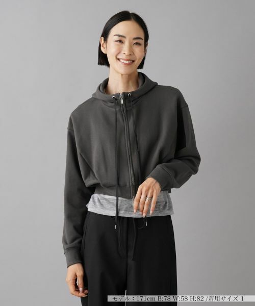 シンプルながらも短めの着丈がモードな雰囲気を演出するジップアップパーカ。ゆったりとしたシルエットで、リラックスした着心地ながらも、裾のリブでウエストを程よく引き締め、スタイルアップ見せを叶えます。フロントはダブルジップ仕様で、アレンジが可能。どんなコーディネートにもマッチするアイテムは、カジュアルからスポーティーはもちろん、スカートを合わせたフェミニンスタイルにまで幅広く活躍します。