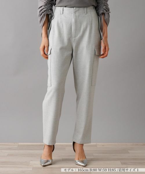シンプルな中にもディテールのこだわりが光るワークパンツ。ウエストと腿部分の両サイドに存在感のある4つのフラップポケットをレイアウトし、絶妙なアクセントを加えています。レッグラインは裾に向かってすっきりと絞り込んだテーパードシルエットでスマートな印象に。バックウエストはゴム仕様で心地よくフィット。ベーシックな無地のデザインなので、様々なトップスと相性がよく、これからの季節のデイリーなコーディネートに取り入れやすいアイテムです。