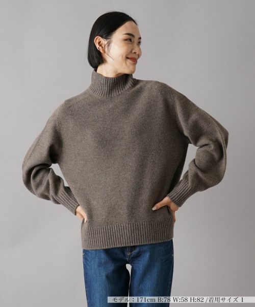 毛100%の柔らかな肌触りと保温性で寒い季節も快適に過ごせるタートルネックニット。程よくゆとりのあるシルエットとドロップショルダーのデザインがリラックス感を演出しつつ、上品で洗練された印象を与えます。裾や袖口のリブディテールがさりげないアクセントとなり、デイリースタイルにこなれ感をプラス。シンプルなデザインなので、パンツやスカートとも合わせやすくお手持ちのアイテムともマッチするアイテムです。一着で季節感と大人の魅力を纏える、この冬1枚は持っていたいアイテムです。