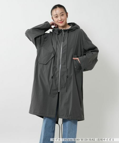 トレンド感あふれるオーバーサイズとアーミーなデザインが特徴のライトフィールドコート。ゆったりとしたシルエットが抜け感を演出し、こなれた印象に。ウエストにはドローコードを備え、シルエットのアレンジも自在。軽やかな素材感で、羽織るだけで旬のスタイルが完成します。フロントの大きめフラップポケットがアクセントとなり、実用性も抜群。デニムと合わせたカジュアルコーデはもちろん、ワンピースやスカートと合わせてフェミニンなスタイルにもおすすめです。