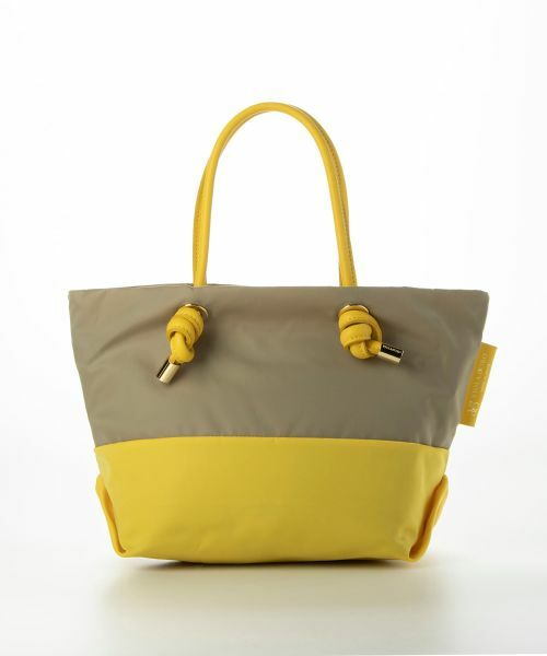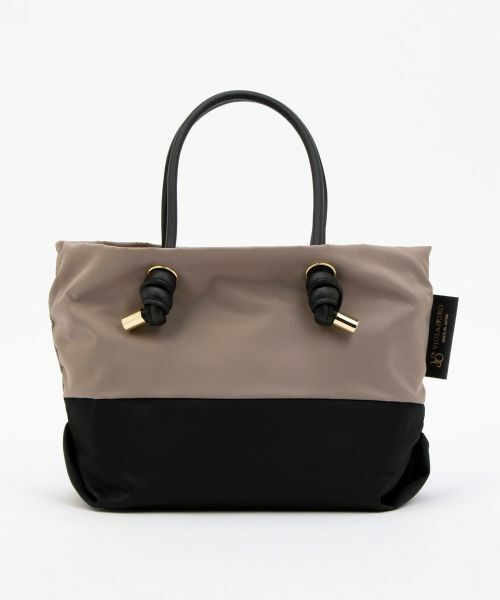 バイカラーデザインに牛床革を使用したレザーハンドルがアクセントになった上品顔のトートバッグ。