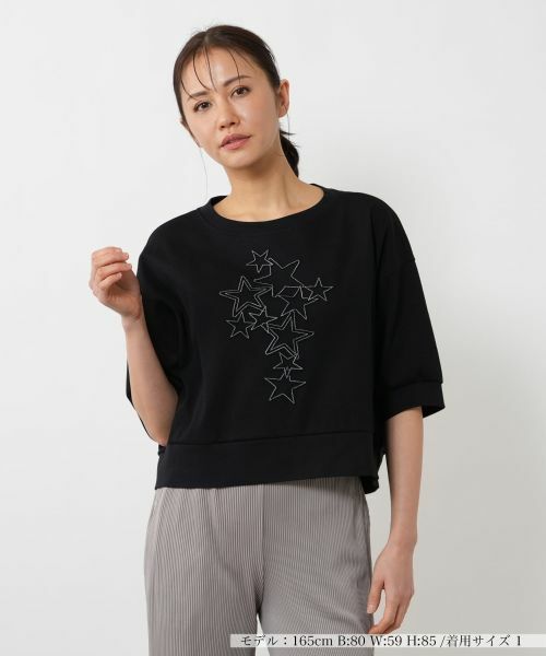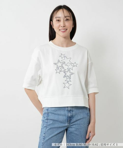 フロントに散りばめられたスターモチーフの刺繍が印象的なプルオーバー。立体感のある刺繍が、シンプルながらも奥行きのある表情に仕上げています。程よく開いたクルーネックが顔周りをすっきりとした印象に見せてくれます。ドロップショルダーとワイドな袖がリラックス感を演出し、程よい丈感でボトムスを選ばずスタイリングしやすいデザインに。デイリー使いはもちろん、カジュアルなスタイルに遊び心をプラスしたい時にも活躍する一枚です。