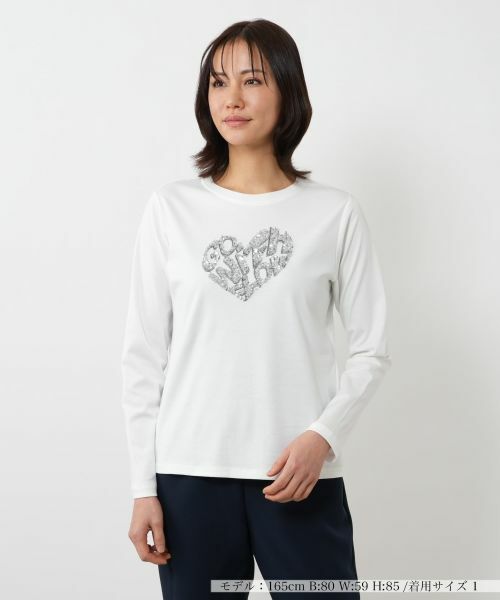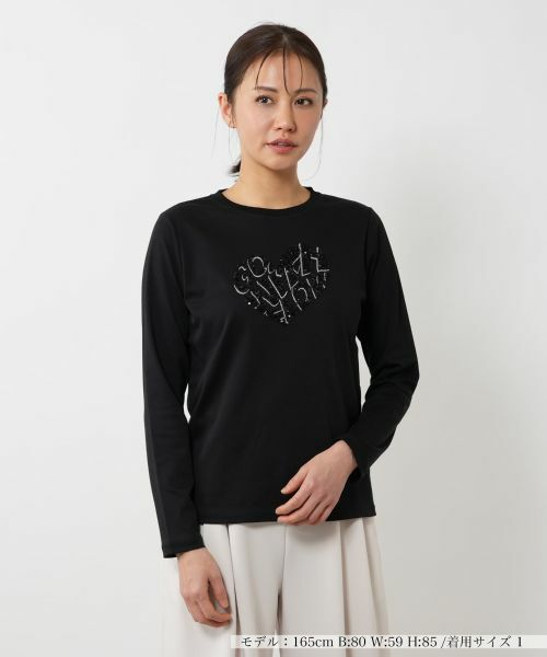 スパンコールが放つ輝きが目を惹く、愛らしいハートモチーフが印象的なクルーネックカットソー。モチーフには「GO WITH YOU」の文字があしらわれ、ハートを形作るユニークなデザインが遊び心を演出。肌触りのよいコットン生地を使用し、デイリーウェアとして気軽に取り入れられる快適な着心地もポイント。シルエットは程よく体に馴染むスタイリッシュなデザインで、一枚でさらりと着こなしても、ジャケットやコートのインナーとしても十分な存在感を放ちます。