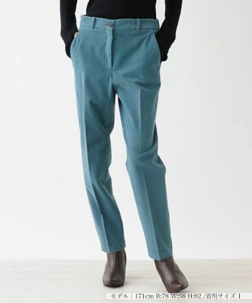 裾に向かって絞り込んだテーパードシルエットで仕立てたセンタープレスパンツ。無駄な装飾を省いたミニマルなデザインで、オンオフのシーンを選ばずに活躍してくれる1本。ストレッチの効いたコットン生地を使用しているので足捌きも良好。右ヒップポケット上部にはロゴ入りの細プレートをあしらい、さりげないアクセントをプラスしています。