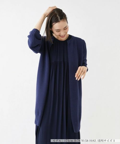 寒暖差のある季節に一枚持っていると便利なコットン素材のロングニットカーディガン。クルーネックやボタンレスのすっきりとしたシルエットで上品さのあるシンプルなデザインに。ヒップが隠れるロング丈なので、パンツスタイルもすっきりとした印象に。カジュアルなTシャツの羽織りに取り入れるだけできちんと仕上がるのも魅力。飽きのこないシンプルデザインなので、トレンドに左右されることなくタイムレスに活躍してくれるアイテムです。