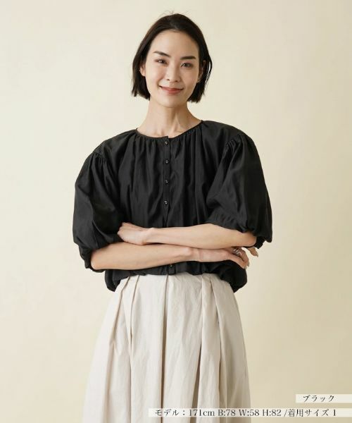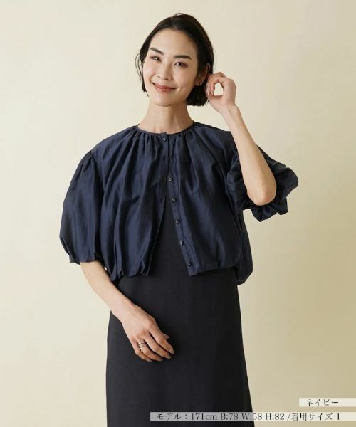 たっぷりとギャザーを入れたふんわりバルーンなフォルムに心惹かれる5分袖ブラウス。ほんのりシャイニーな生地の風合いも美しい、コーデを華やかに盛り上げてくれるアイテムです。ショート丈なので、ワンピースやロングスカートともバランスが取りやすくスタイルアップ見せをアシスト。上品なデザインのアイテムなので、首元にネックレスなどを合わせれば、ちょっとしたお呼ばれのシーンにも活躍してくれそう。
