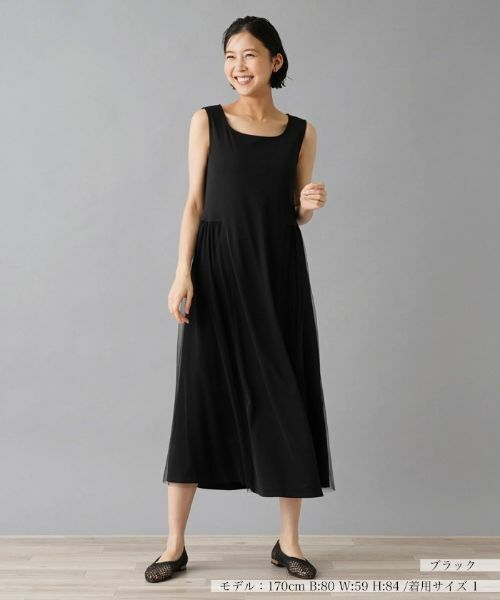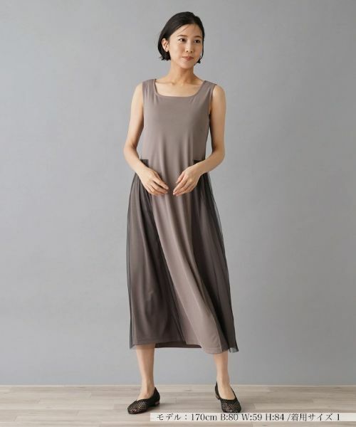 さらっとした素材をメインに、スカート部分の両サイドにシアー素材を重ねたワンピース。綺麗な首元を演出するスクエアネックが特徴で、細部までこだわりが詰まった一着となっています。ウエスト位置を高めに設定しているため、スタイルアップ効果も期待でき、シルエットが美しく映えそうです。足元はサンダルやスニーカーを合わせて、フェミニンにコーディネートするのも素敵。カジュアルな日常使いからお洒落な外出まで幅広く活躍し、着こなしの幅を広げてくれそうなアイテムです。